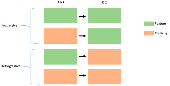 After summarizing the report into these four components, only the “Feature” and “Challenge” components were utilized to represent health system development. In this study, HS development was defined in terms of being (a) Progressive or (b) Retrogressive using matched variables from the HS 1 and HS 2. Progressive classification was defined in terms of two aspects: (a) Challenge changed to Feature; (b) Feature retained as Feature. When a challenge in HS 1 becomes a feature of HS 2, it means that HS 2 was able to progressively address the challenge. While, if the feature remains the same between two health systems, it only signifies that HS 2 was able to maintain that current feature. The HS 2 was retrogressive if a feature in HS 1 became a challenge in HS 2. Similarly, if a challenge in HS 1 remained to be a challenge in HS 2, it only indicated that there was not much progress in addressing such a challenge. A graphical summary is shown in Figure 3.