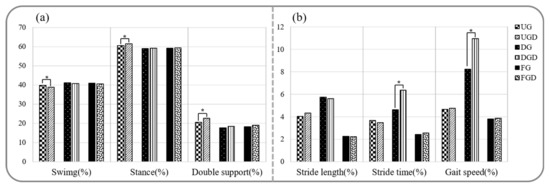 - Hollman, J.H.; Kovash, F.M.; Kubik, J.J.; Linbo, R.A. Age-related differences in spatiotemporal markers of gait stability during dual task walking. Gait Posture 2007, 26, 113–119. [Google Scholar] [CrossRef] [PubMed]