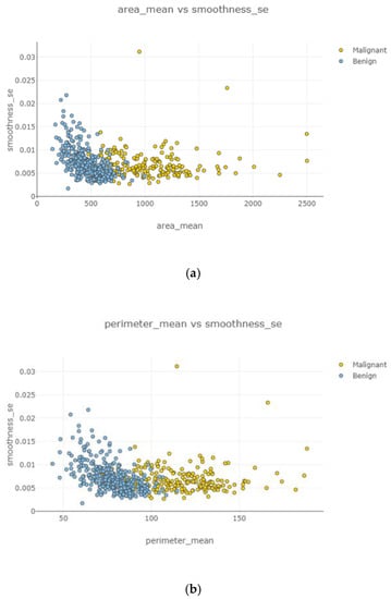 Figure 12b) correlation value, and smoothness standard error and perimeter mean (