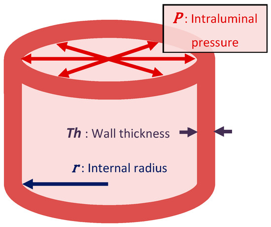 T: Wall tension; P: Intraluminal pressure; r: Internal radius; Th: Wall thickness