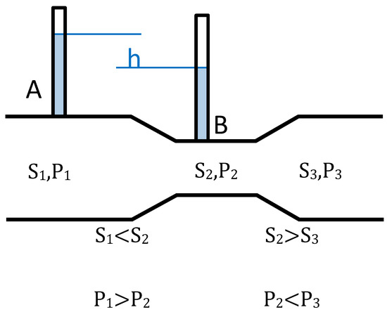 Blood is sent by impulses through the ventricle, and arteries are responsible for converting intermittent flow (ventricle–aorta) into continuous flow (arterioles–capillary circulation). This is thanks to the Windkessel effect, which transforms the potential energy produced by the deformation of the aortic wall into kinetic energy to push blood through arterioles, capillaries, and venules continuously. Another principle to consider in relation to vascular ulcers is the Venturi effect (see Figure 3), which states that when a fluid is circulating through a duct and its radius (r) is reduced, the speed (s) of the fluid increases and the pressure (P) decreases.