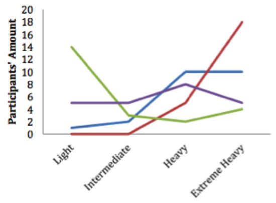 - Tong, X.; Gromala, D.; Bartram, L.; Rajabiyazdi, F.; Carpendale, S. Evaluating the Effectiveness of Three Physical Activity Visualizations? How People Perform vs. Perceive. In Proceedings of the Personal Visualization: Exploring Data in Everyday Life 2015, Chicago, IL, USA, 25 October 2015; p. 2015. [Google Scholar]