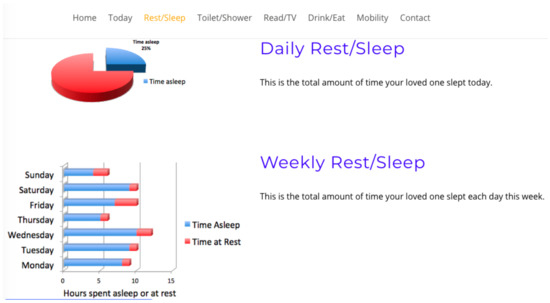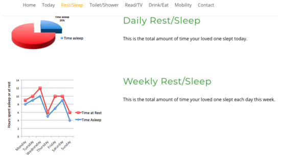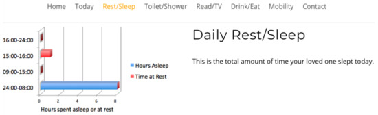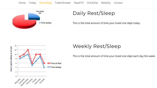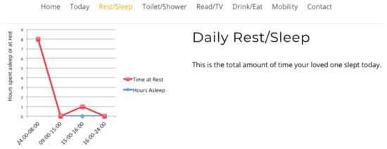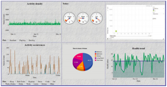 Sleep is a fundamental component in maintaining a healthy lifestyle. As we age, our medical needs become more complex, and sleep patterns may vary or become erratic. It is these variations that carers/relatives seek reassurance on [46] as it affects their ability to make decisions [47], reduces their mobility/dexterity and could lead to accidents within the home. The ability to take daily medications for extended periods of time is crucial for managing medical conditions, and non-compliance affects long-term health prognosis [48,49,50]. Mobility level is imperative for elders as it promotes agility, balance, health and well-being, reducing the risk of falling and subsequent health consequences. For caregivers, the ability to establish the whereabouts of a loved one through the use of localisation interfaces could be vital for reassurance and safety if dementia or Alzheimer’s is a limiting factor.