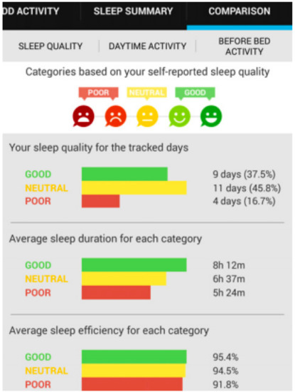 - Choe, E.K.; Lee, B.; Kay, M.; Pratt, W.; Kientz, J.A. SleepTight: Low-burden, self-monitoring technology for capturing and reflecting on sleep behaviors. In Proceedings of the 2015 ACM International Joint Conference on Pervasive and Ubiquitous Computing, Osaka, Japan, 7–11 September 2015; ACM: New York, NY, USA, 2015; pp. 121–132. [Google Scholar]