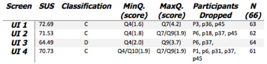 - However, the SUS scoring system did not affirm this, with UI 4 only receiving an overall score of 70.73.