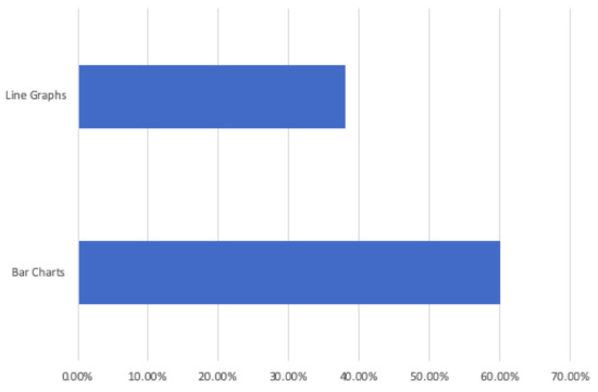 Research studies indicate that line, bar and pie charts, see Figure 3, Figure 4 and Figure 5, are the most easily understood [53,63,64] formats for displaying ADLs to users. A combination approach optimises the features from each format to maximise comprehension [65], see Figure 6. Line charts [66] can visualise the user requirements for easily understood UIs incorporating colour to accentuate areas of interest or concern.