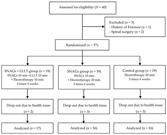 APA StyleSeo, U.-H., Kim, J.-H., & Lee, B.-H. (2020). Effects of Mulligan Mobilization and Low-Level Laser Therapy on Physical Disability, Pain, and Range of Motion in Patients with Chronic Low Back Pain: A Pilot Randomized Controlled Trial. Healthcare, 8(3), 237. https://doi.org/10.3390/healthcare8030237