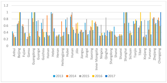3.3. Analysis of the Total Efficiency of the Provinces from 2013 to 2017
