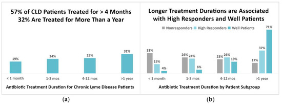 The use of antibiotics and the duration of antibiotic treatment for CLD is controversial [41]. This is because there is no biomarker that can determine whether Borrelia burgdorferi has been eradicated in CLD patients. In addition, CLD is an under-funded disease that has not attracted pharmaceutical interest in treatment improvement. Only three grants have been funded by the NIH to assess treatment response in Lyme patients who remain ill after a short course of antibiotics—the last was funded over 20 years ago. These trials yielded conflicting results, relied on average treatment effects, employed small samples (ranging from 37 to 129 subjects), and excluded over 89% of patients who sought to enroll [22,24,30].