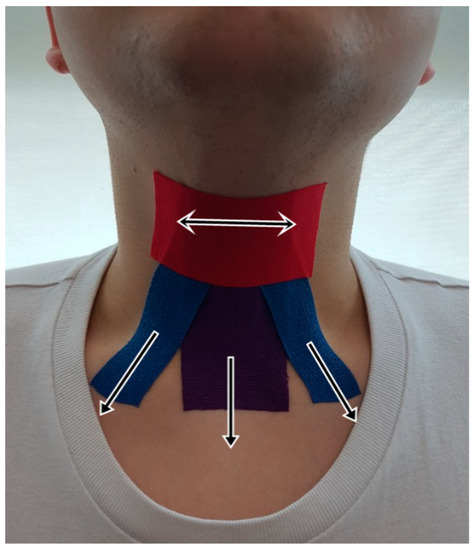 - Park, J.-S.; Jung, Y.-J.; Kim, H.-H.; Lee, G. A Novel Method Using Kinesiology Taping for the Activation of Suprahyoid Muscles in Healthy Adults: A Preliminary Research. Dysphagia 2020, 35, 1–7. [Google Scholar] [CrossRef] [PubMed]