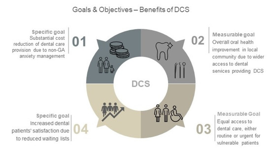 It is challenging for clinicians to cope with cases of non-cooperative patients with special requirements and phobic individuals when advanced options for anxiety management are considerably reduced. Although dental treatment under GA in hospital setting seems to have some essential benefits, such as appropriate critical care and recovery facilities, highly trained staff, controlled and monitored conditions during a single treatment session, DGA should be only considered as a “last resort option”. Whilst general anaesthesia services during the pandemic crisis period were deferred or severely restricted to the most urgent/emergency cases, the use of DCS can be extremely valuable in taking pressure off from limited GA service provision for urgent dental care (Figure 2). Without well-organized and managed, DCS service provision, supported financially and logistically by authorities, ministries of health, and local healthcare decision-makers, GA provision becomes the only (limited) alternative in a particular region or even in the whole country. This could undoubtedly severely affect the access to dental care, anxiety control measures, and additional costs of healthcare. The overall cost of treatment under GA is 3–4 times higher than that of utilizing DCS methods and includes remuneration for anaesthetists, dental staff, as well as the cost of consumables, equipment, portering, and the availability of inpatient beds reserved for use by the service [14]. The retrospective study assessing the need for DGA with Oldham Community Dental Service demonstrated that only 25% of patients actually required a single session of DGA, and the rest of the group accepted dental treatment with routine means, local anaesthesia, and/or conscious sedation [15]. Unfortunately, there are no randomized controlled studies comparing general anaesthesia versus sedation for children and adolescents undergoing dental treatment.