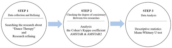 For sustainable research in the field of DT, a SR of the quality of meta-analysis studies is required. Although research has been conducted to evaluate the quality of systematic literature reviews in the field of dance, to our knowledge, no studies have been conducted on the methodological quality evaluation of meta-analysis related to DT. Hence, in this study, AMSTAR and AMSTAR 2 are used simultaneously to perform a methodological quality evaluation of meta-analysis studies and analyze the assessment results generated by each tool. Therefore, this study will test the following: (1) What are the main characteristics of DT meta-analysis? (2) What is the methodological quality evaluation score and quality level of DT related meta-analysis research? and (3) Is there a difference in the quality of evaluation score for each variable of DT in the meta-analysis research?