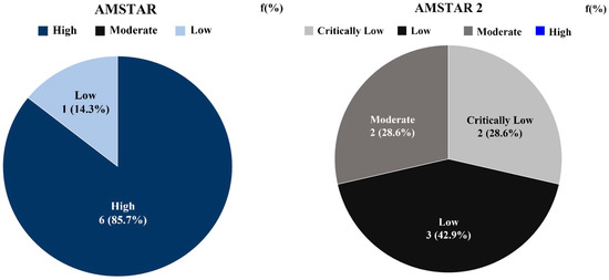 - Karina, K.D.S.; Llkay, K. Assessing the Quality of Systematic Reviews in Healthcare Using AMSTAR and AMSTAR2: A comparison of scores on both scales. Z. Psychol. 2020, 228, 36–42. [Google Scholar]