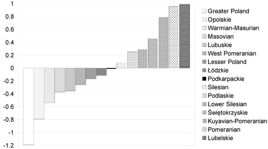 where Wk is Perkal’s indicator for “k” voivodeship; n is the number of variables; and Zik is the normalized value of the “i” variable for “k” voivodeship.