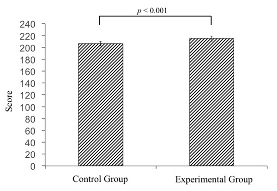 The average scores of National OSCE were higher in the experimental group than the scores in the control group (214.8 in the experimental group vs. 206.5 in the control group, p < 0.001).