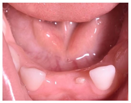 Moreover, in the literature, numerous congenital syndromes are considered to be associated with natal/neonatal teeth [23,24,25]. A thorough examination of the available literature shows that the most common congenital syndromes correlated with natal or neonatal teeth are: Ellis–van Creveld, Jadassohn–Lewandowsky, Hallermann–Streiff, Rubinstein-Taybi, steatocystoma multiplex, Pfeiffer, craniofacial dysostosis and adrenogenital syndromes [23,24,25]. In addition, natal and neonatal teeth are more frequent in children with cleft lip than among the general population [26]. It is important to be mentioned that the patient from our case report was not associated with any anomalies or syndromes.