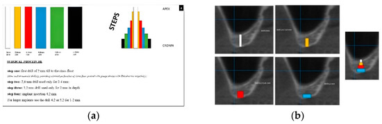 (a,b) Schematic description of the surgical technique allowing the formations of steps after drilling (a); as an example, the scheme is superimposed on a cone beam computed tomography (CBCT) of an atrophic posterior maxilla (b).