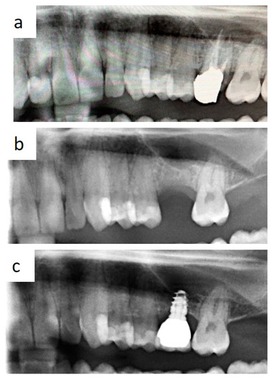 - Capodiferro, S.; Favia, G.; Scivetti, M.; De Frenza, G.; Grassi, R. Clinical management and microscopic characterisation of fatique-induced failure of a dental implant. Case report. Head Face Med. 2006, 2, 18. [Google Scholar] [CrossRef] [PubMed]