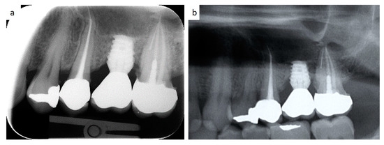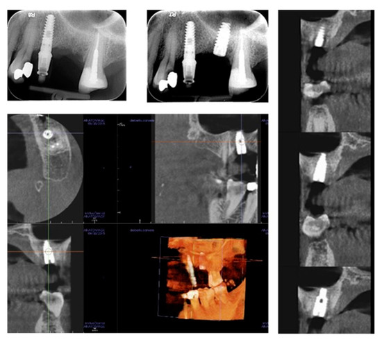 As for the follow-up, peri-implant bone loss was measured directly on a periapical radiograph (as peri-implant bone loss from the fixture–abutment connection to the depth) at the time of re-opening (second surgery for submucosal implants) and two years after prosthetic rehabilitation. Data regarding implant survival after ten years were mostly collected by phone recall (asking the patient if implant rehabilitation was still present or not) as some patients refused additional radiograph or clinical follow-up; thus, data regarding bone loss measurement after ten years are missing.