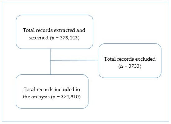 The analyses were restricted to EMS requests initiated by individuals. After the initial screening of data, 3733 records were excluded because EMS were provided at a public event staffed by paramedics in attendance and no external activation by 997 or through ASAFNY was initiated. A total of 374,910 fit the inclusion criteria (Figure 1).