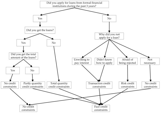 - Li, C.; Sun, T. Channel credit constraints, informal finance and farmers’ welfare level. Reform 2018, 296, 92–103. [Google Scholar]
