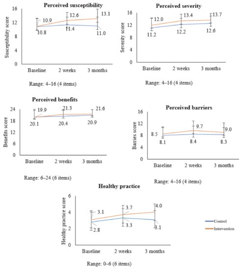 | Perceived susceptibility | Intervention | 75.7 | p < 0.001 | 0.33 | 55.5 | p < 0.001 | 0.26 |