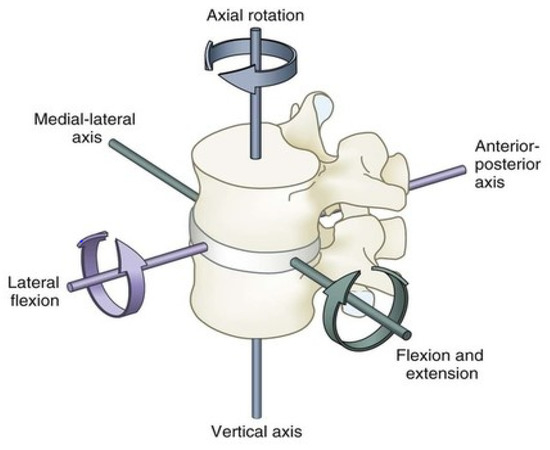 - Shirazi-Adl, A.; Ahmed, A.M.; Shrivastava, S.C. Mechanical Response of a Lumbar Motion Segment in Axial Torque Alone and Combined with Compression. Spine 1986, 11, 914–927. [Google Scholar] [CrossRef]