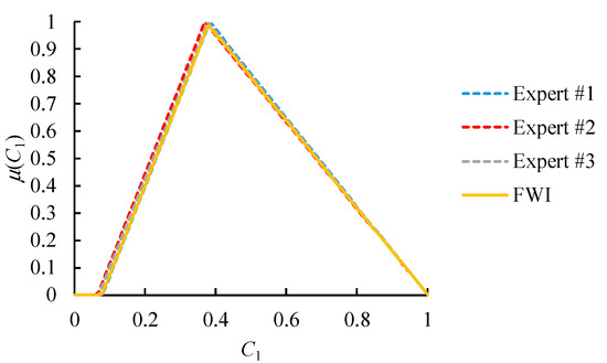 An example is provided in Figure 6. Values that are considered highly possible by all experts or just the most authoritative expert will have high memberships in the FWI result. This result is more in line with the expectations of all experts and is more acceptable to everyone.