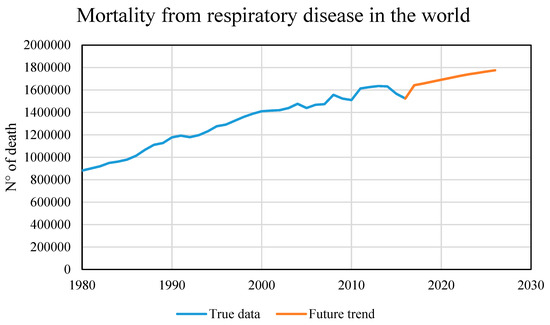 Mortality from respiratory disease (true data and future trend).