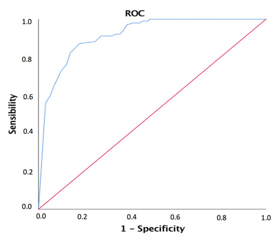 Likewise, Figure 1 shows the ROC curve for the predictive level of CPTO in the determination of excellent skills. The area under the curve was 0.916 (95% CI: 0.884–0.947; p < 0.001). A score ≥152.50 on the CPTO indicates that the student has excellent skills.
