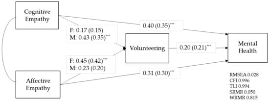 Therefore, this study seeks to contribute to extant literature by investigating the mediating effect of volunteering for the relationships between cognitive and affective empathy and mental health and the moderating effect of gender for the relationship between empathy and volunteering. Thus, the study considers the multi-dimensionality of empathy when investigating the relationships between empathy, volunteering, and mental health and examines the different effects of cognitive and emotional empathy on volunteering by gender.