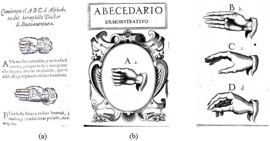 - Bonet, J.P. Reduction de las Letras y arte para Enseñar a Ablar a los Mudos; [Simplification of the Letters of the Alphabet and Method of Teaching Deaf-Mutes to Speak]; Francisco Abarca de Angulo: Madrid, Spain, 1620; pp. 126–127. [Google Scholar]
