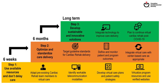 11. Moulson, N.; Bewick, D.; Selway, T.; Harris, J.; Suskin, N.; Oh, P.; Coutinho, T.; Singh, G.; Chow, C.M.; Clarke, B.; et al. Cardiac Rehabilitation during the COVID-19 Era: Guidance on Implementing Virtual Care. Can. J. Cardiol. 2020, 36, 1317–1321. [Google Scholar] [CrossRef] [PubMed]