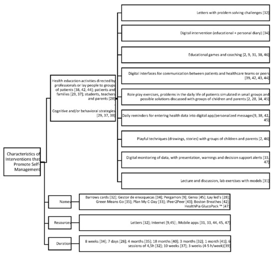 In the nursing discipline, these interventions represent, above all, health education, being the elementary school space in this approach. School-age children face many barriers to self-management in the school environment. Achieving self-management at this stage is important for maintaining health and quality of life into adulthood [31,47].