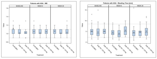 | ASA | Placebo | 68 * | 13 | 19.1 | 30 | 44.1 | 78.2 | 6.7 | 72.0 | 13.0 | 166.3 | 10.6 | 26.0 | 3.9 |