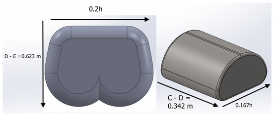 The 50th percentile of the normal distribution of the Huston anthropometric data [20] was used to design the body segments under test scope. The dimensions of the anthropometric models were obtained relative to height (h), as shown in Figure 2. The average height was set to 175.9 cm, torso height was set to 34.2 cm, and the hip height equals 26.3 cm. The corresponding weights based on an average body weight of 80.42 kg: torso weight was set to 29.53 kg, and the hip weight was set to 10 kg. All the parameters of the models were calculated using Ralph Huston principals of biomechanics [20].