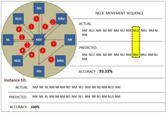 Predicted movements show that 93.33% accuracy was achieved, and one neck movement was wrongly predicted.
