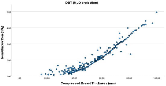 - Alakhras, M.M.; Mello-Thoms, C.; Bourne, R.; Rickard, M.; Diffey, J.; Brennan, P.C. Radiation dose differences between digital mammography and digital breast tomosynthesis are dependent on breast thickness. In SPIE Medical Imaging; SPIE; International Society for Optics and Photonics: San Diego, CA, USA, 2016; p. 9783. [Google Scholar]