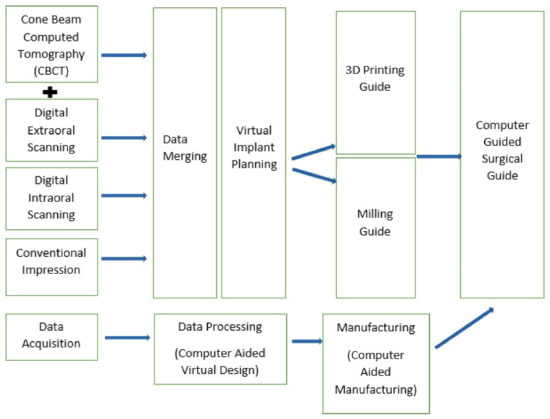 The conventional digital workflow on computer guided surgical guide is as given in the schematic diagram below (Figure 3).