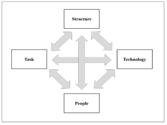 - Leavitt, H.J. Applied organizational change in industry: Structural, technological and humanistic approaches. In Handbook of Organizations, 1st ed.; (Reprinted from the first version published in 1965 by Rand McNally & Company); March, J.G., Ed.; Routledge: London, UK; New York, NY, USA, 2013; pp. 1144–1170. [Google Scholar]