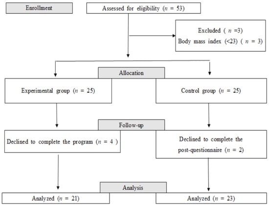 - Nho, J.-H.; Hwang, E.S. Effects of Multidisciplinary Lifestyle Modification Program on Health-promoting Behavior, Psychological Distress, Body Composition and Reproductive Symptoms among Overweight and Obese Middle-aged Women. Korean J. Adult Nurs. 2019, 31, 663–676. [Google Scholar] [CrossRef]