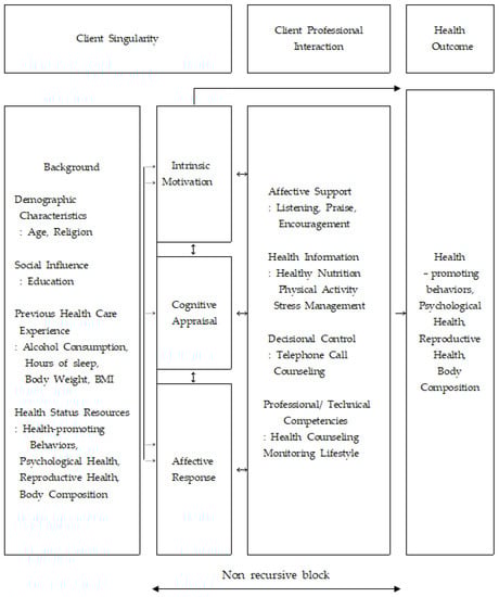 - Cox, C.L. An interaction model of client health behavior: Theoretical prescription for nursing. Adv. Nurs. Sci. 1982, 5, 41–56. [Google Scholar] [CrossRef]