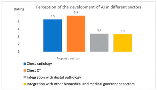 Figure 3 shows the answers to Likert scale item #16: “Please indicate your opinion on the degree of AI development during the pandemic in the following areas”.