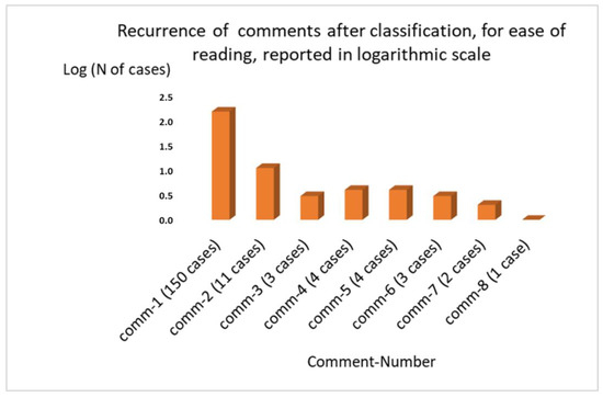 Figure 6 highlights in a logarithmic scale the outcome for each group of comments.
