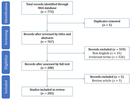 - Tricco, A.C.; Lillie, E.; Zarin, W.; O’Brien, K.K.; Colquhoun, H.; Levac, D.; Moher, D.; Peters, M.D.J.; Horsley, T.; Weeks, L.; et al. PRISMA extension for scoping reviews (PRISMA-ScR): Checklist and explanation. Ann. Intern. Med. 2018, 169, 467–473. [Google Scholar] [CrossRef] [PubMed]