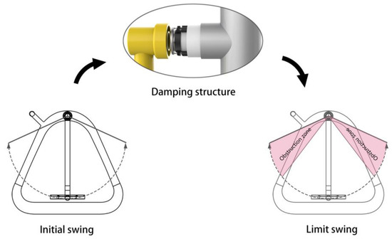 Among the factors affecting the safety performance of the walker, the pendulum movement that is most likely to cause safety accidents is selected to optimize the failure events of itself and others due to the excessive amplitude [17]. As shown in Figure 4, the whole walker adopts a cone-shaped design to increase stability while clarifying the boundaries of the activity interval, distinguishing the pedestrian and user behavior areas, and reducing the safety hazards of accidentally hurting pedestrians.