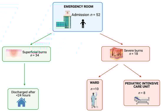 Flow chart of the children admitted to the emergency room. Created with BioRender.com (https://biorender.com/) (access on 7 May 2021).
