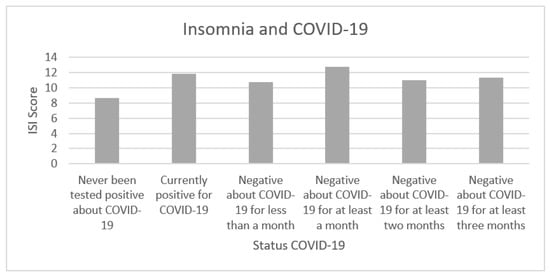 The mean values of the scores indicated by the subjects regarding their insomnia (ISI score) are reported, stratified by COVID-19 status.