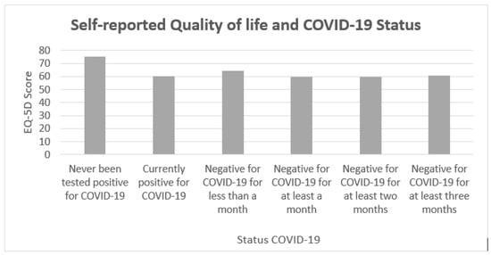 Finally, subjects with COVID-19 and long-COVID-19 showed a self-reported level of quality of life that was 14.64 points lower (19.5% less) than that of subjects who never had COVID-19. These results are consistent with the outcomes reported in recent investigations that revealed a reduction in the quality of life of subjects with COVID-19 or long-COVID syndrome [,].
