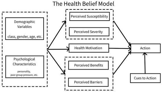 The Health Belief Model (HBM) by Rosenstock (1966) [26] was used in this study to explore the factors driving and inhibiting making healthy food choice. The diagram is produced by an unknown author and licensed under CC BY-SA for public use.